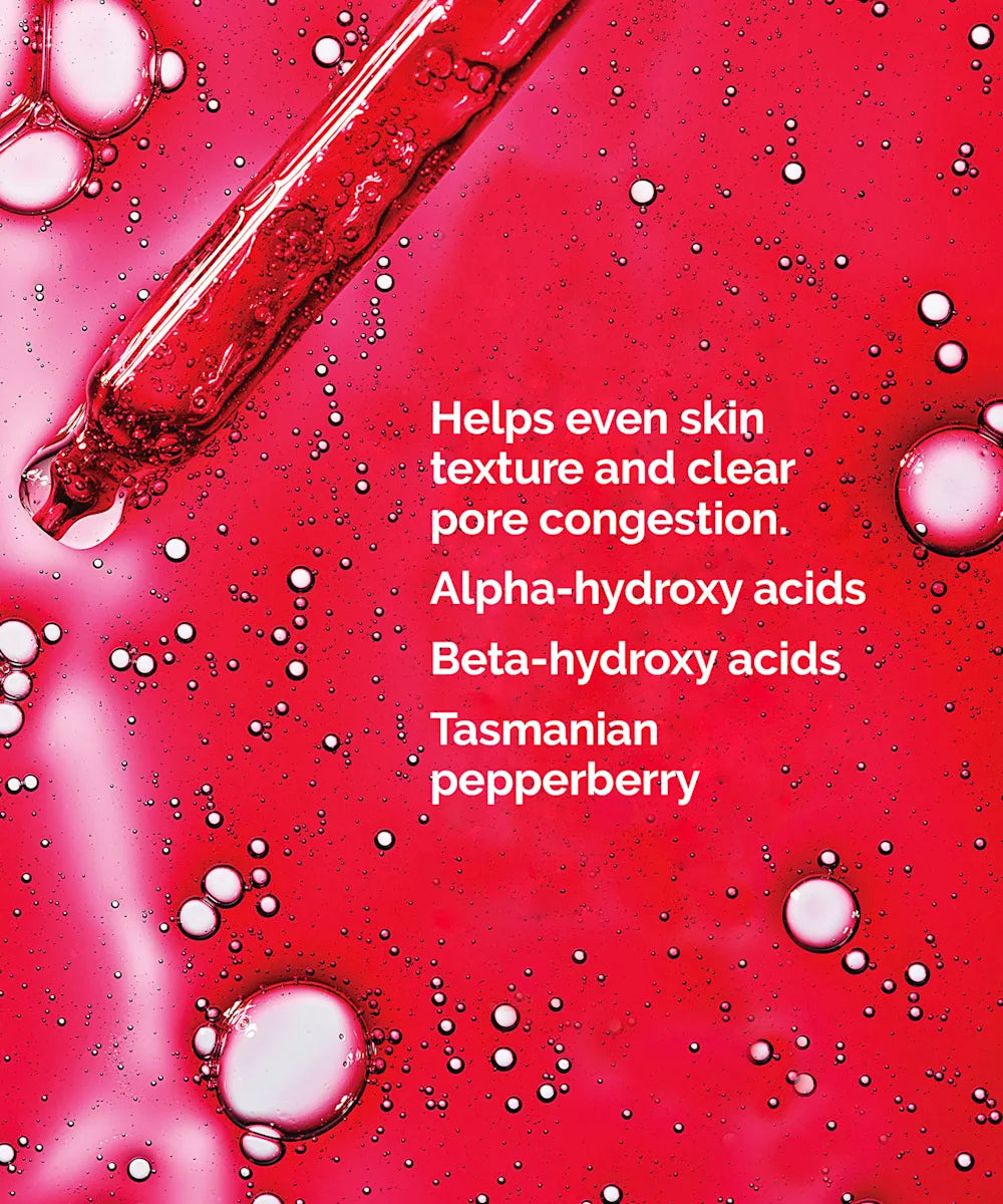 Treating the top layer of skin, AHA 30% + BHA 2% Peeling Solution exfoliates for a brighter and clearer complexion. Fighting visible blemishes, continued weekly use reduces pore congestion and fine lines for a bright, youthful complexion.